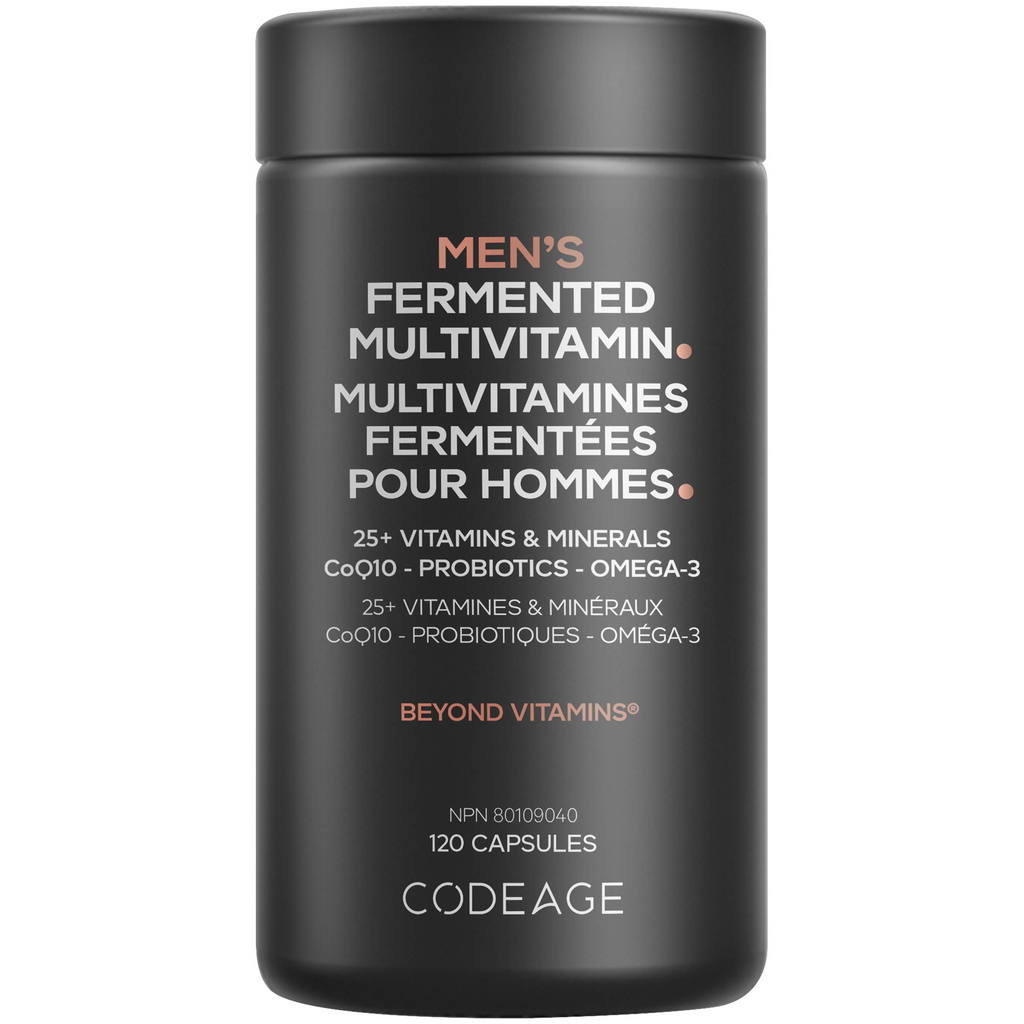 Codeage Men’s Multivitamin is a comprehensive all-in-one formula featuring essential vitamins, minerals, and whole-food nutrients to support daily wellness. It includes vitamins A, C, D3, E, and K2, along with minerals like zinc, magnesium, and selenium, plus superfoods such as organic ginger, cordyceps, and reishi. Enhanced with probiotics, enzymes, CoQ10, and fermented herbs, this vegan and non-GMO formula supports energy, immunity, digestion, and overall vitality.