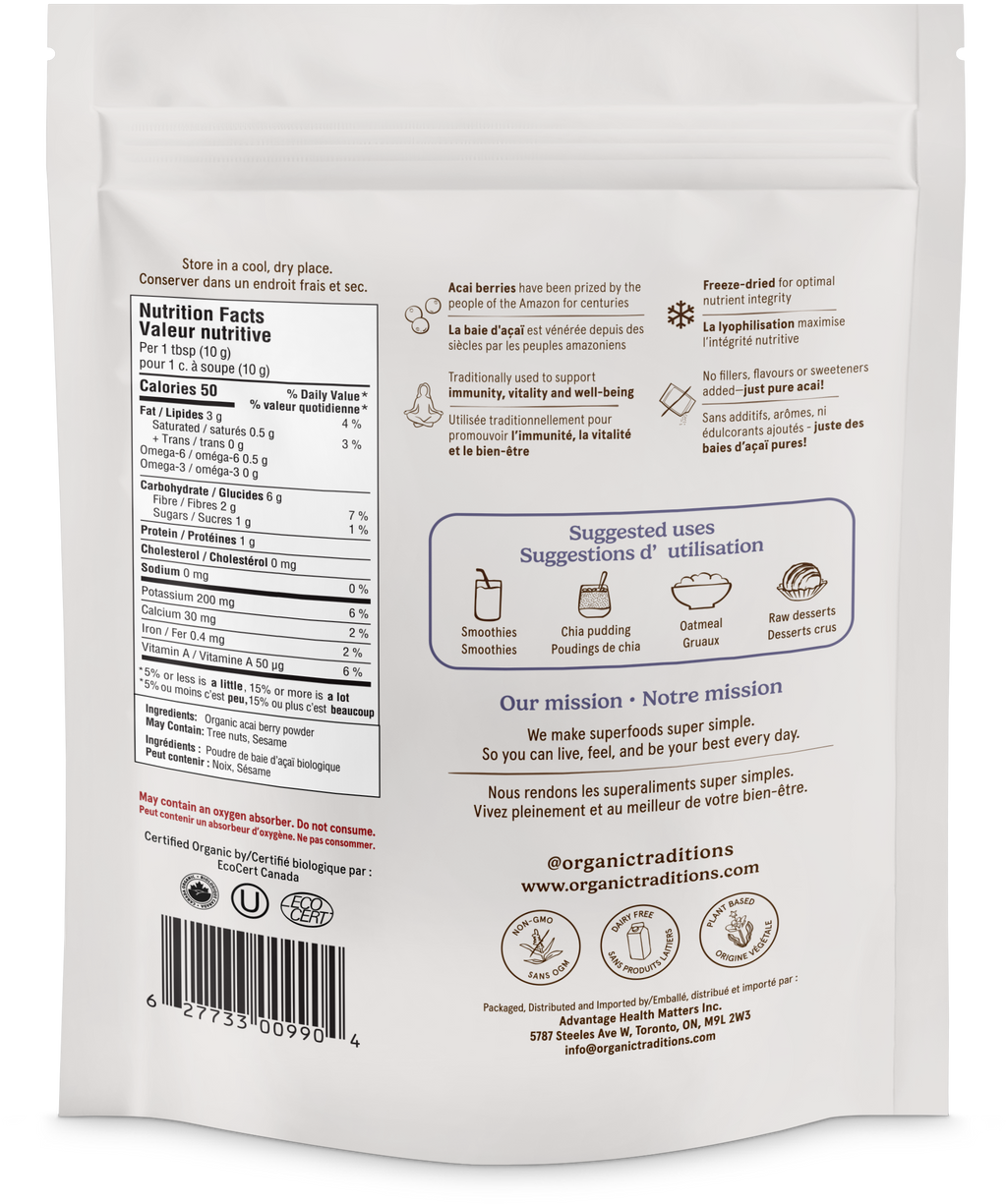 - Facts about Organic Traditions Freeze Dried Acai Berry Powder: