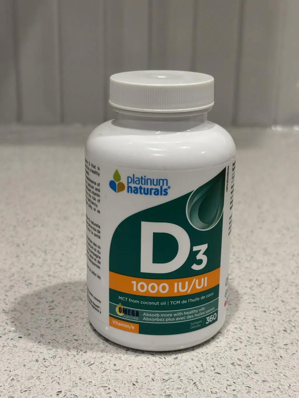 Vitamin/e D3 (Cholecalciferol / cholécalciférol): 25 mcg / 1000 IU. Non-Medicinal Ingredients: Medium Chain Trigylcerides (from coconut)